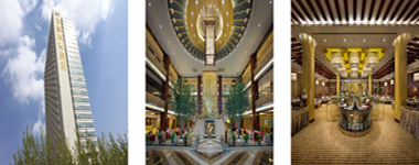 金獅國際酒店是滄州市第一家集商務、餐飲、會務、健身、娛樂于一體的五星級酒店。總建筑面積5.8萬平方米,酒店共有375間標準客房,另外還設四開間大使套房和五開間總統套房。房屋裝修高檔,采用低噪音排風系統,恒溫恒濕控制。開闊的視野,齊全的設備保證了客房的高品質,同時將滄州深厚的文化底蘊通過建筑的語言充分體現出來。